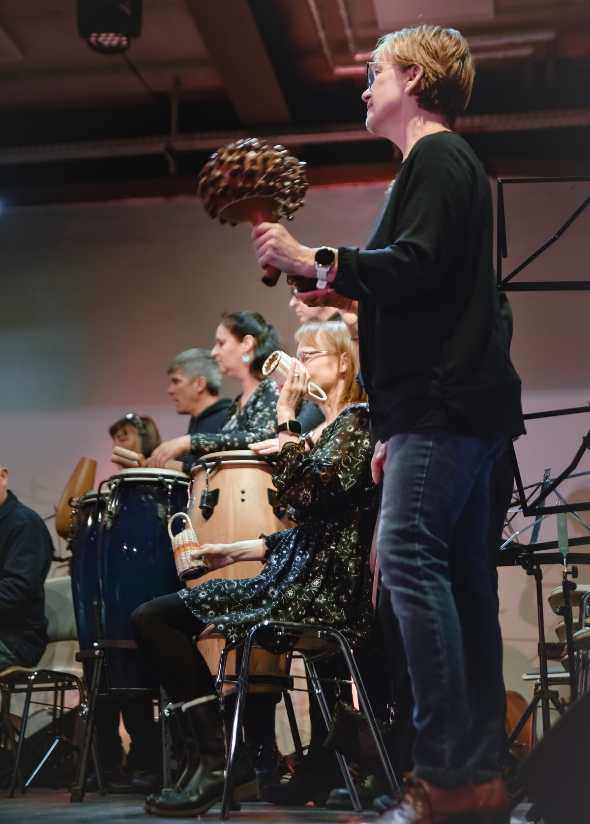 Das Ensemble kommt aber auch ganz ohne Instrumente aus, wenn die Teilnehmenden mit ihren Körpern Töne erzeugen und sie zu komplexen Rythmen kombinieren. Bodypercussion hat neben der rhythmisch-musikalischen auch eine gewisse choreografische Dimension.